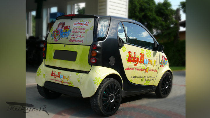 REKLAMA NA SAMOCHODZIE Reklama na pojazdach jest jedną z ważniejszych form reklamy. Zaletą tego rodzaju reklamy jest jej mobilność. Oznakowany pojazd znakomicie przyciąga uwagę innych kierowców i przechodniów w różnych częściach miasta czy regionu Folie wycinane Folie drukowane i laminowane Folie lakierowane Folie specjalne (np. carbon, kameleon)